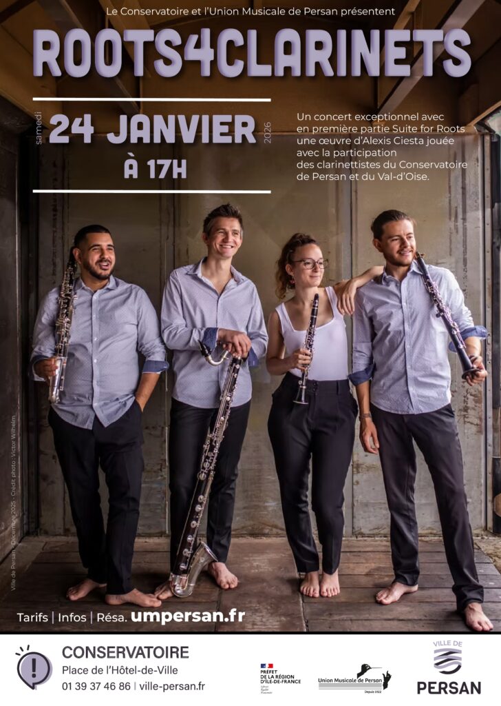 Un concert exceptionnel avec en première partie « Suite for Roots » une œuvre d’Alexis Ciesta joué avec la participation des clarinettistes du conservatoire de Persan et du Val d’Oise.